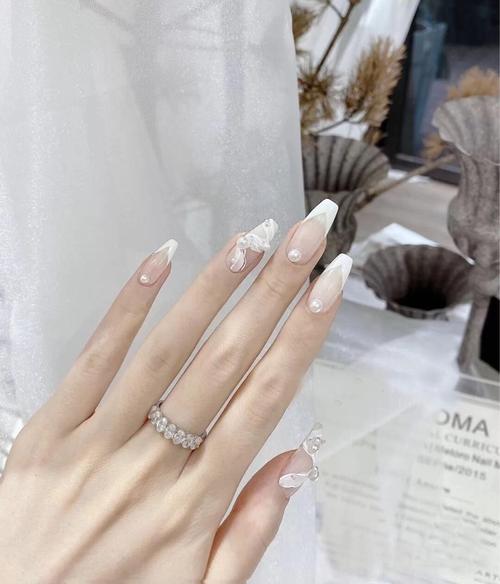 小红书爆款网红芭蕾舞鞋长款日系美甲成品甲片珍珠立体手工蝴蝶结