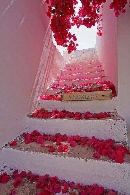 一步步向上的台阶两旁开满鲜花高清浪漫意境图片