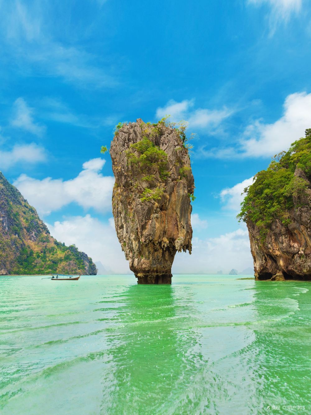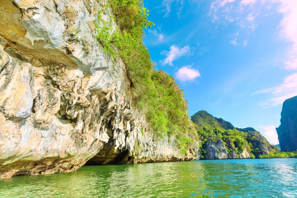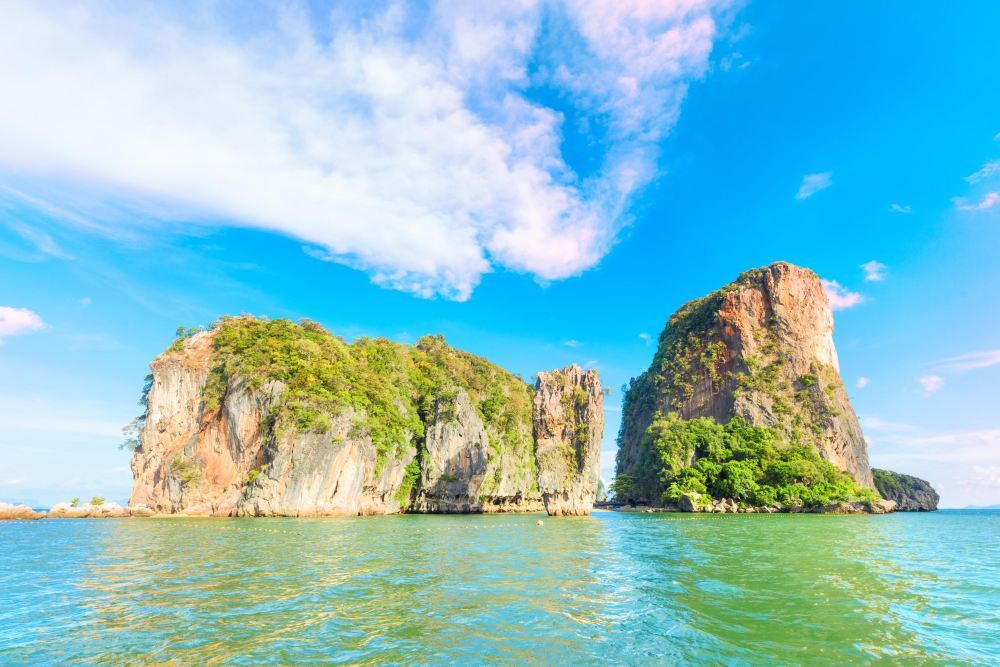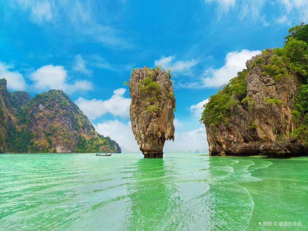 攀牙湾位于普吉岛东北角75公里处,被誉为全岛风景美丽的地方,有泰国的“小桂林”之称。这里遍布着数以百计的形态奇特的石灰岩小岛,小岛的名称与其形状很吻合。另外,还有巧夺天工的钟乳石岩穴和数不清的怪石、海洞。