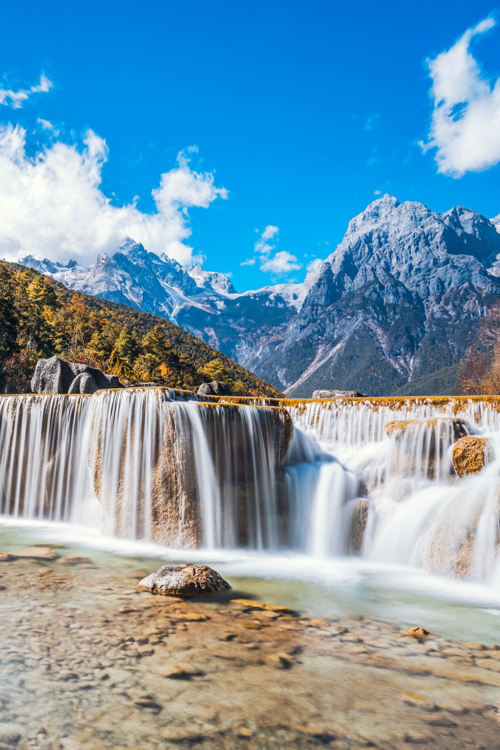 蓝月谷位于丽江玉龙雪山脚下,是玉龙雪山融水的白水河流经此地形成,池水清澈见底,而且一片奇幻的蓝色,非常震撼眼球。蓝月谷有“玉液”湖、“镜潭”湖、“蓝月”湖和“听涛”湖四个颜色各异的湖泊,还有很多小瀑布错落有致,拍照十分漂亮。