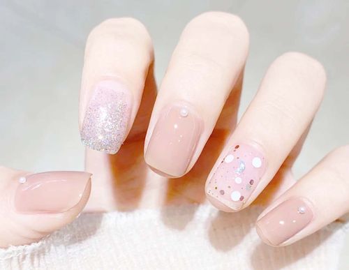 仙女款ins风裸色系亮片美甲图