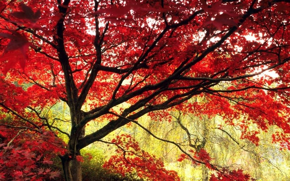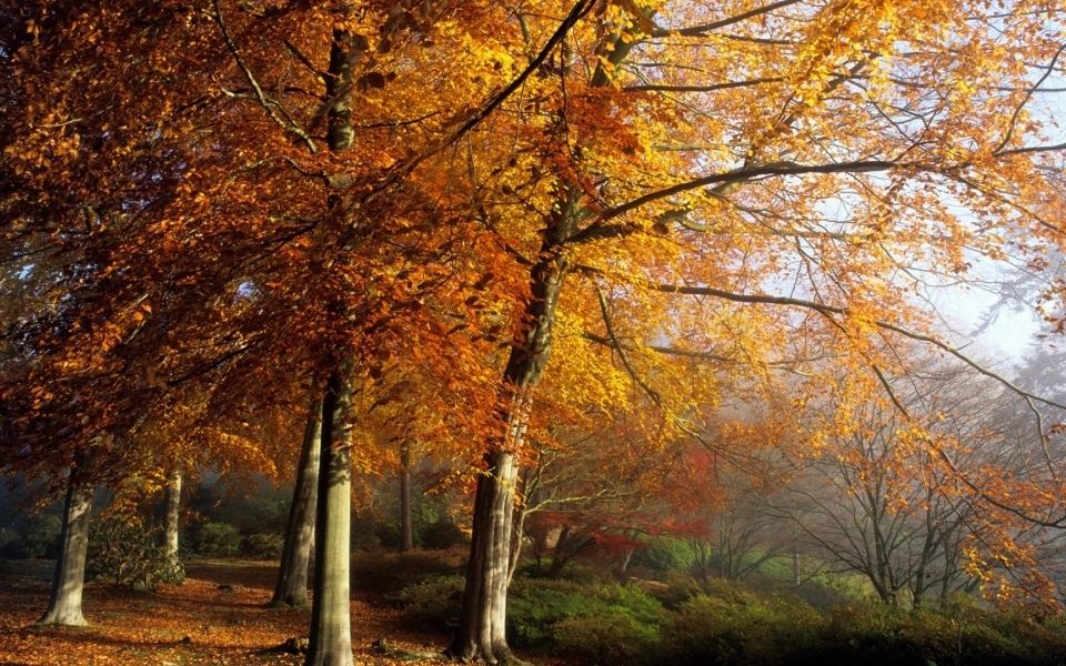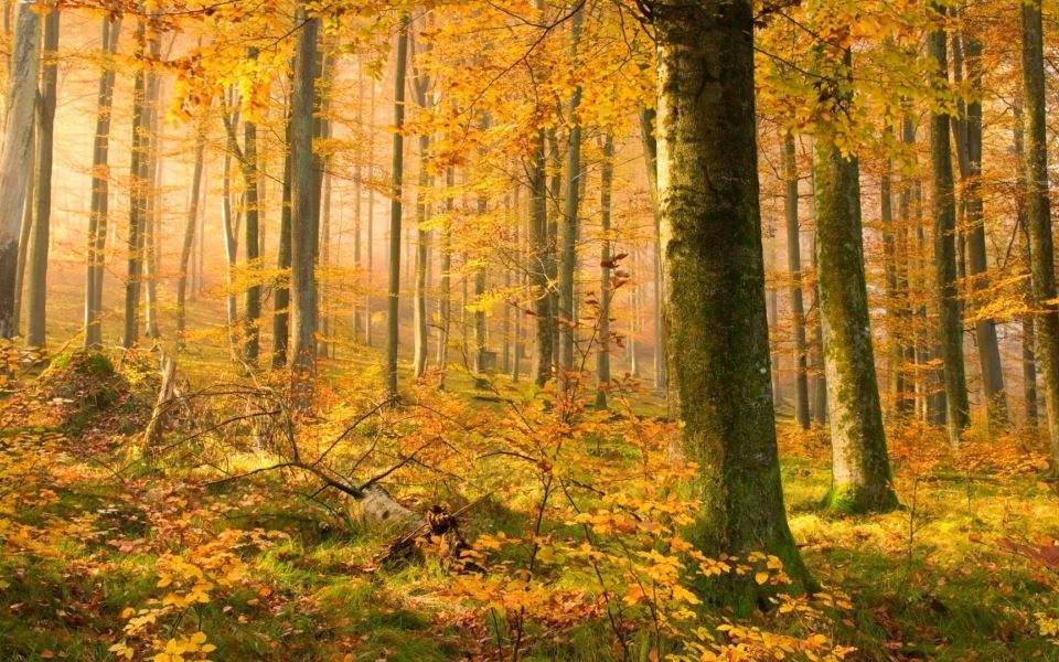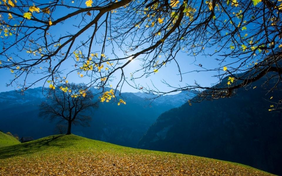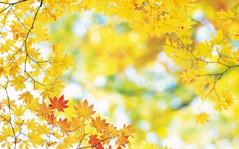 唯美好看温暖金黄色秋风落叶意境真实风景高清图片